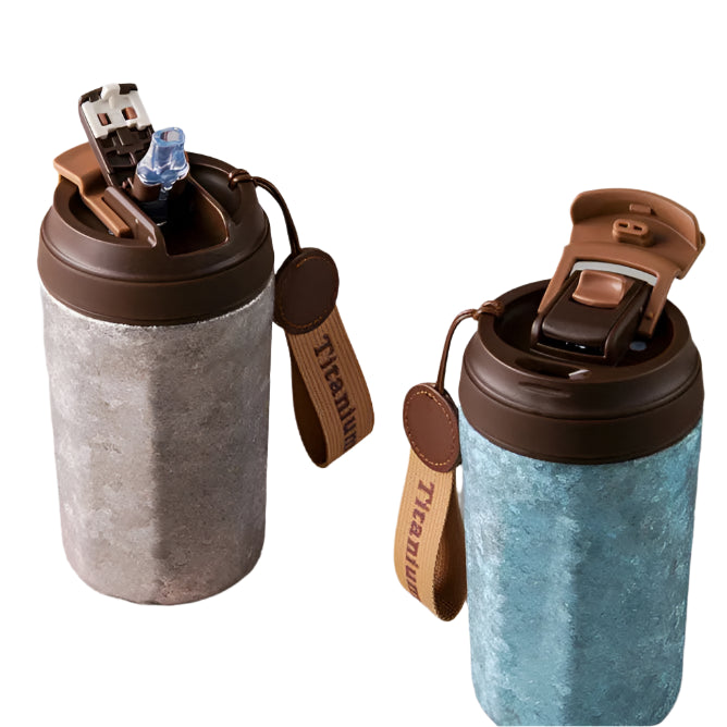 Stay refreshed anywhere with this 420ml double-wall titanium thermos cup, crafted for strength, insulation, and everyday convenience. Its vacuum-sealed titanium body keeps drinks hot or cold for up to 6 hours while maintaining pure taste without metallic flavour. The soft lifting rope makes it easy to carry, and the included straw adds comfort for on-the-go sipping.