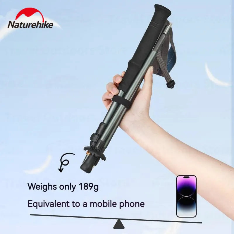 Ultralight carbon folding trekking poles with 5-section design and 7075 alloy support. Compact, durable, and ideal for tramping and alpine hiking.